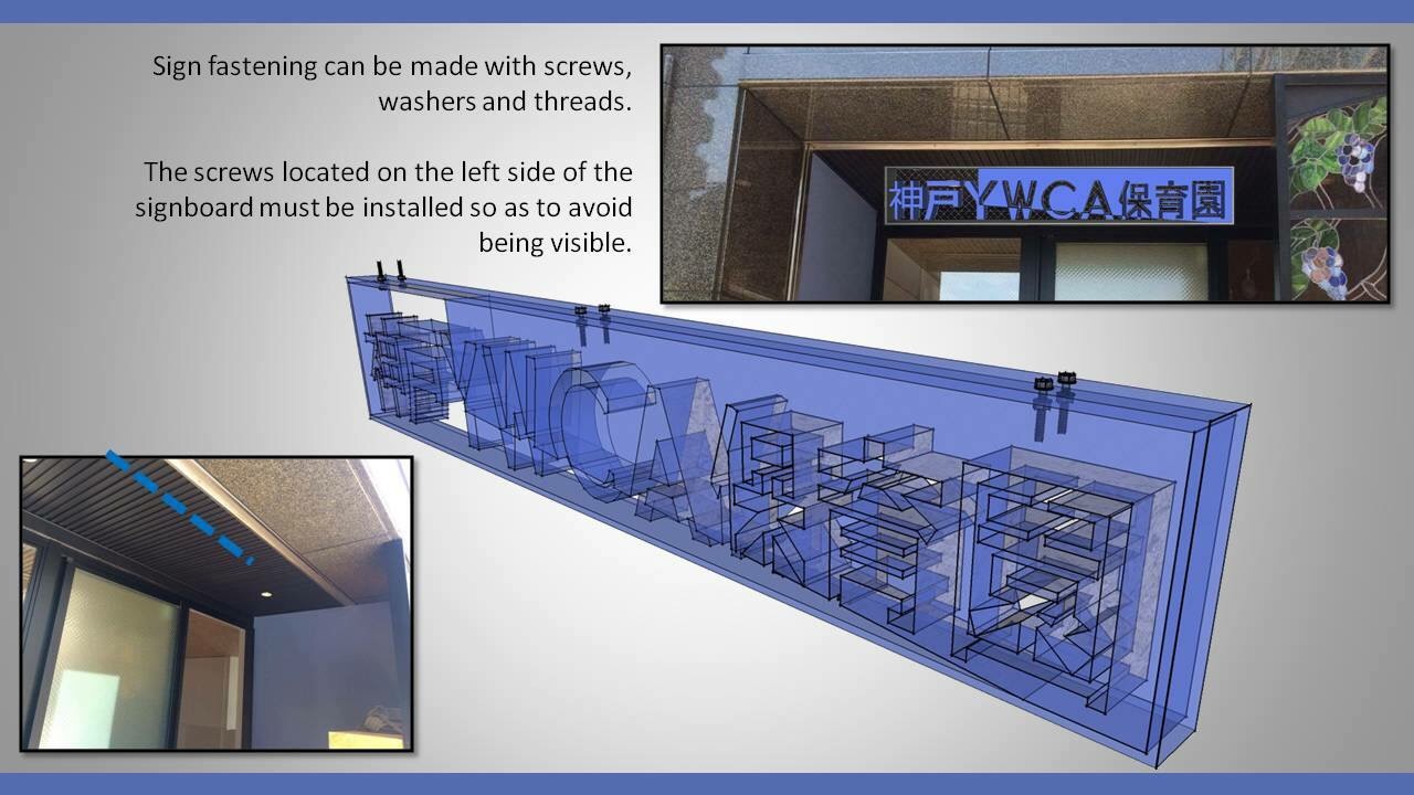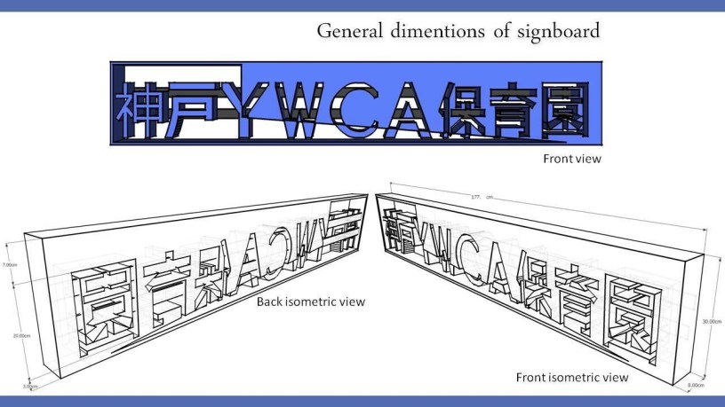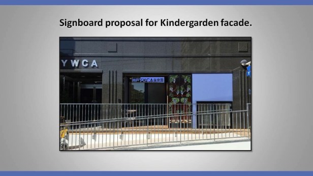 This is a signboard was designed by Ceci who jointed to work my farm from April. The sign board will be attached front of the entrance. Their are another existing two sign boards for different type of purpose, and looks similar because written same letters ” YWCA” So it feels like messy as too much sign. How we can do, in order to the sign get used to around the building. And require to distinctive, not to stand out as an conspicuous and recognize from the people walk by.
