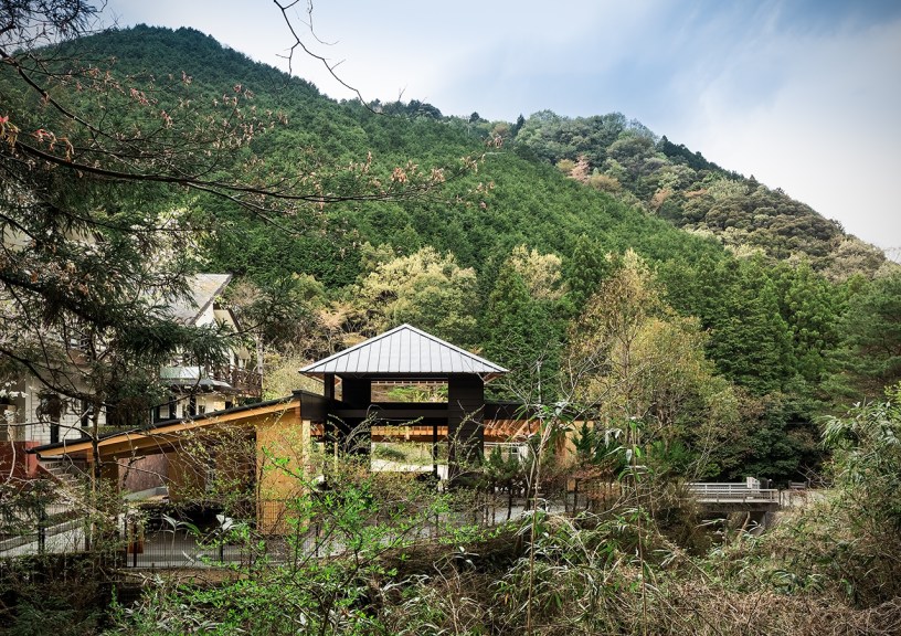炊事場のある中心の場所は棟の高さを一段上げ、釜場からの排煙機能を持たせるようにしており外観上建物のランドマークとなるよう構成している。また、この一段上がった棟から前面アプローチ部分へ番傘のように裾を広げる垂木を連続させ、印象深い庇を構成させている。